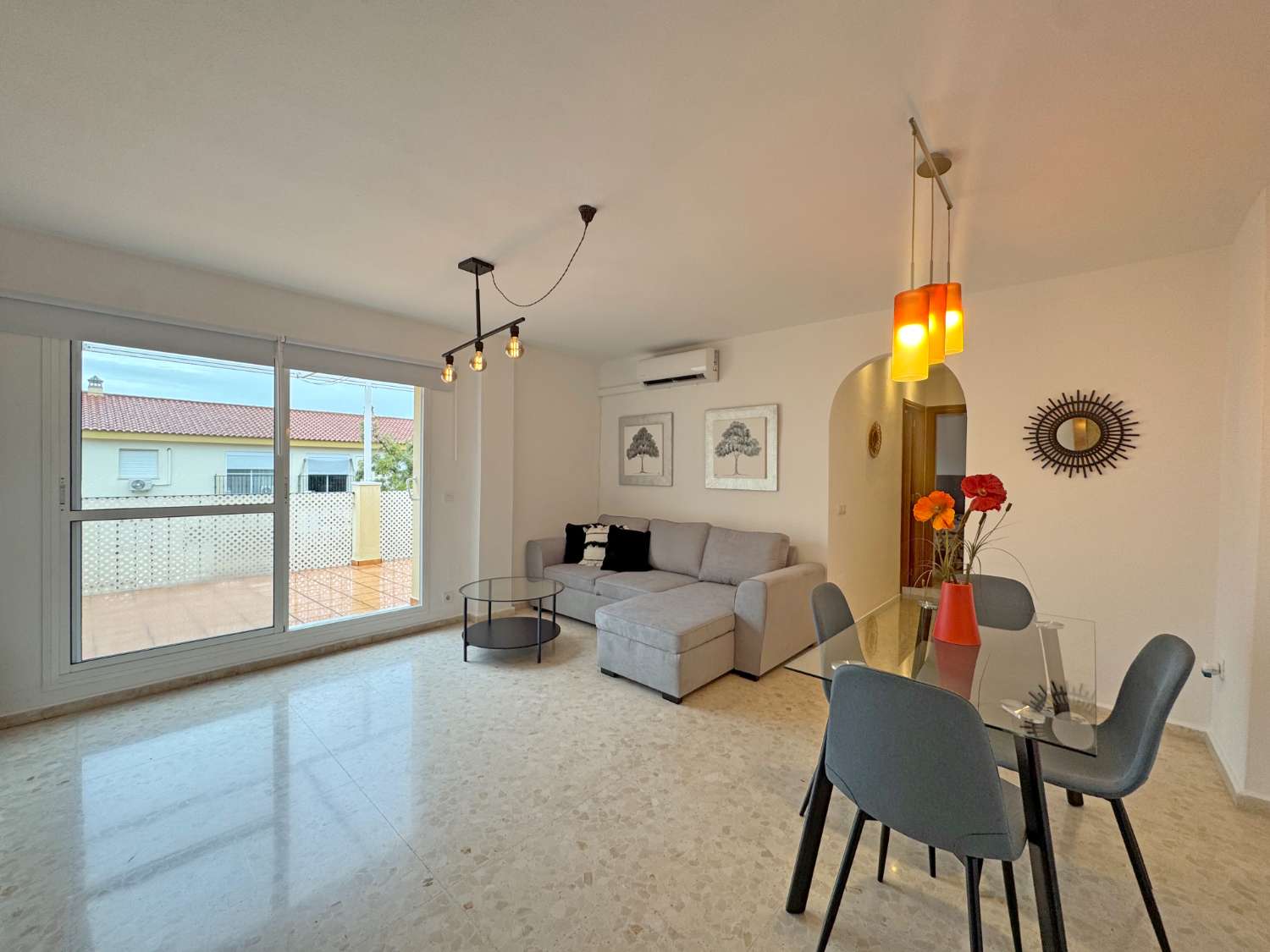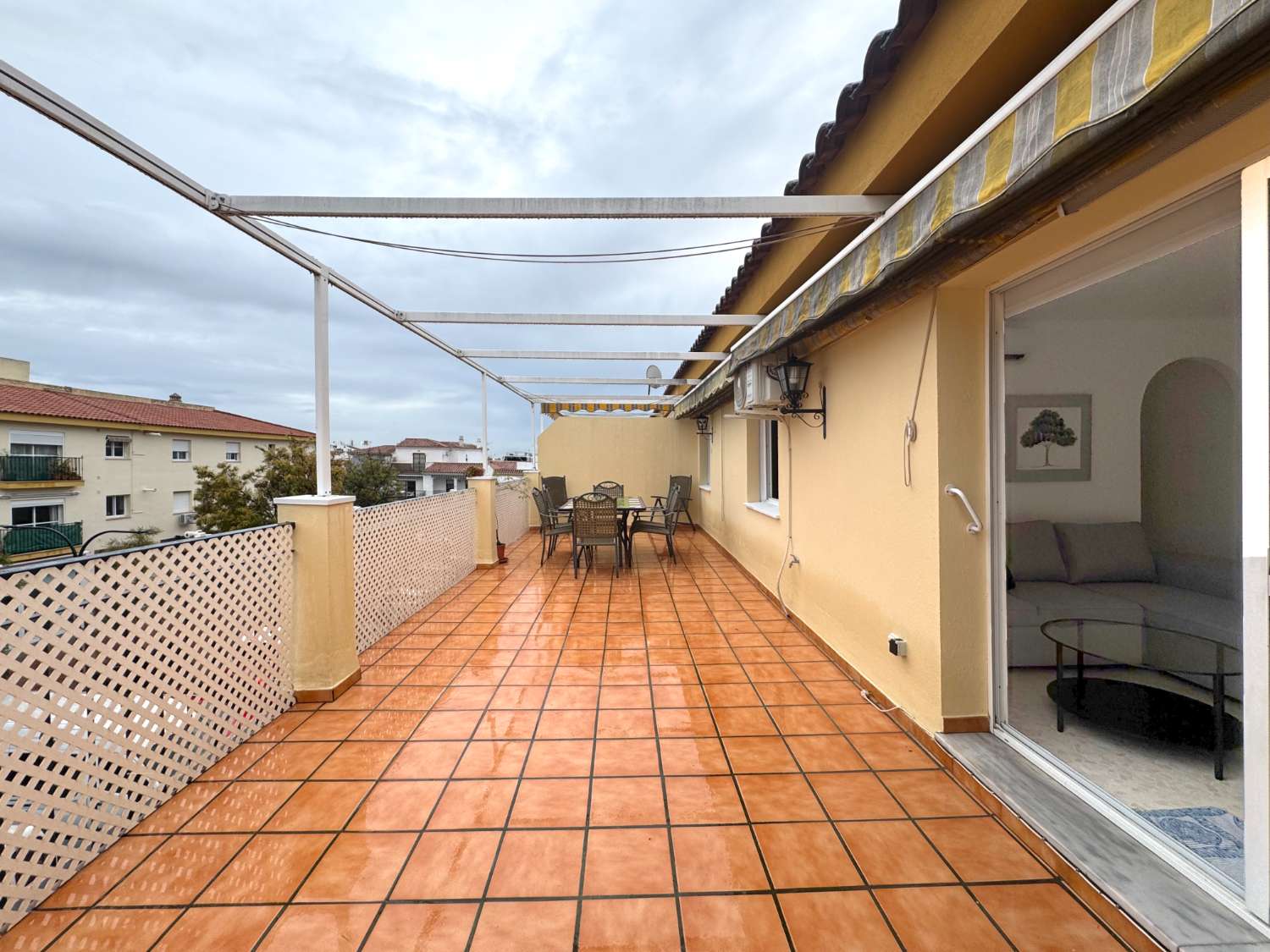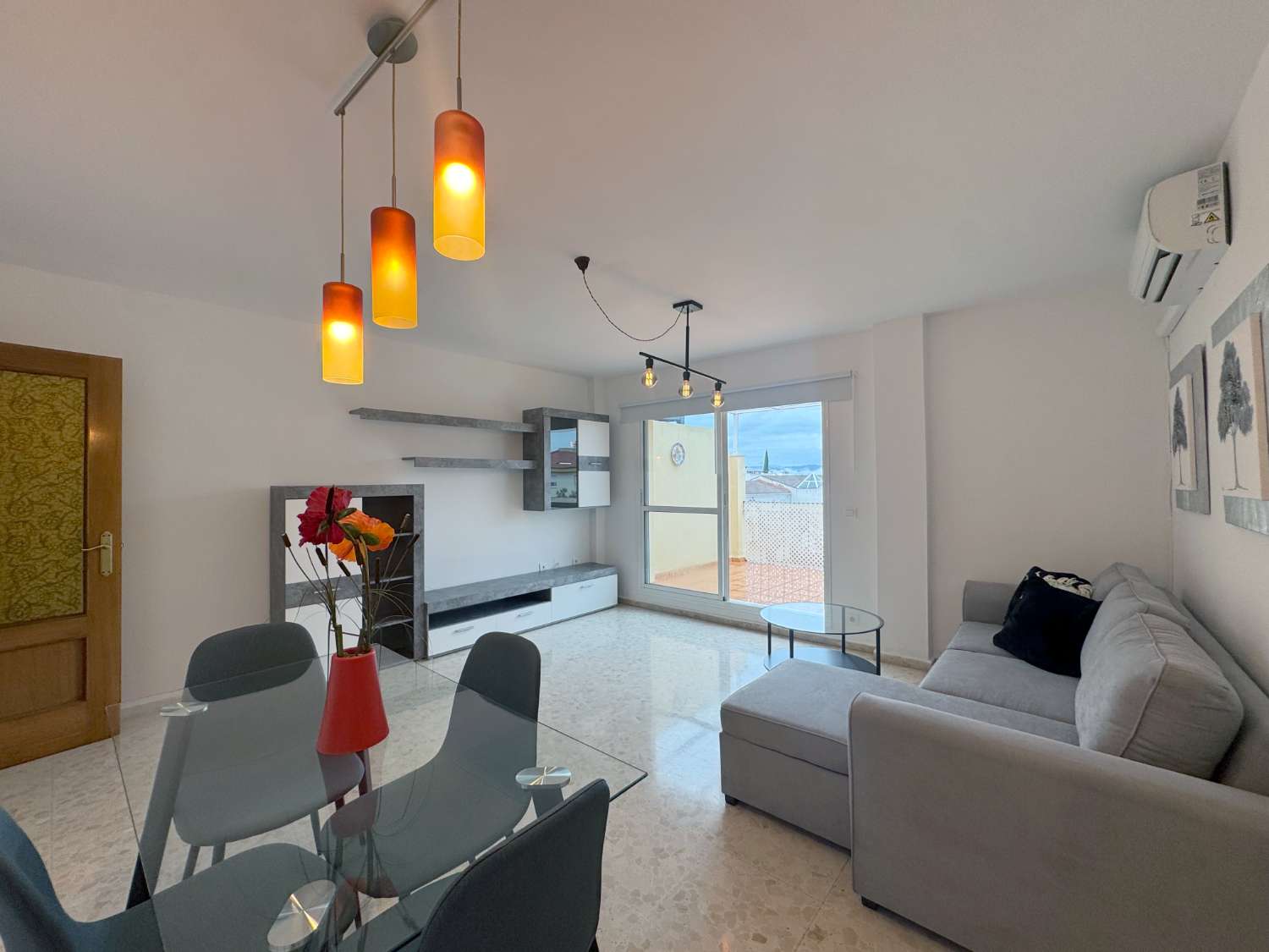 Tresol Inmobiliaria presenta este precioso ático completamente listo y preparado para entrar a vivir, compuesto por 3 habitaciones, 1 baño completo recién reformado una cocina completamente amueblada y con electrodomésticos (nevera, horno y grifo con osmosis recién puestos, lavavajilla, lavadora, vitrocerámica, campana y microondas se encuentran en buen estado), Un amplio salón a estrenar del que se accede a través de unas puertas correderas a una terraza de 33m2 aproximadamente que es la joya de este ático ideal para pasar momentos agradables en familia y con amigos. Situado en una zona inmejorable cercano a todos los servicios, tiendas, mercado municipal, farmacias, parques, paradas de autobús. El mobiliario es el que aparece en el reportaje fotográfico, indicar que el Chaise Long y la cama individual tienen canapé ideal para tener un espacio extra de almacenaje. El agua caliente es a través de termo de gas. Se alquila sin TV. Maquina de aire acondicionado frio/calor en salón. La terraza cuenta con toldos para hacer más agradable su uso en verano para aliviar del calor y en invierno de la humedad.
