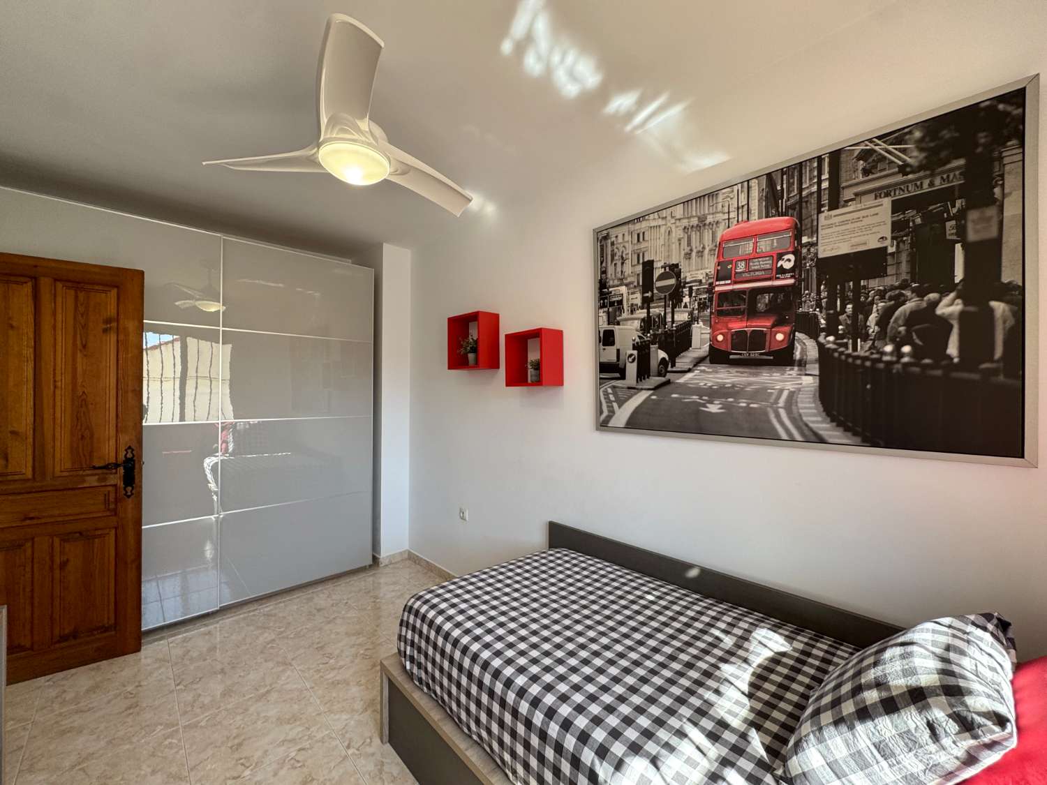 Los 3 dormitorios son muy luminosos y tienen armarios empotrados. El principal de 17,5m2, tiene randes armarios hechos a medida que se quedan en la vivienda. demás tiene una pequeña terraza cerrada que actualmente es usada de lavandería.