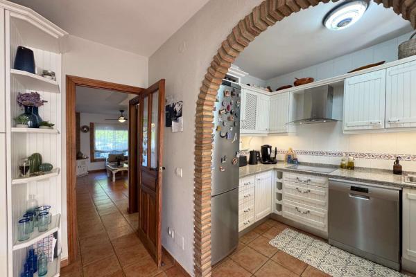 Además, tiene un patio en la entrada y una terraza comunicada con la cocina y jardines y piscinas.