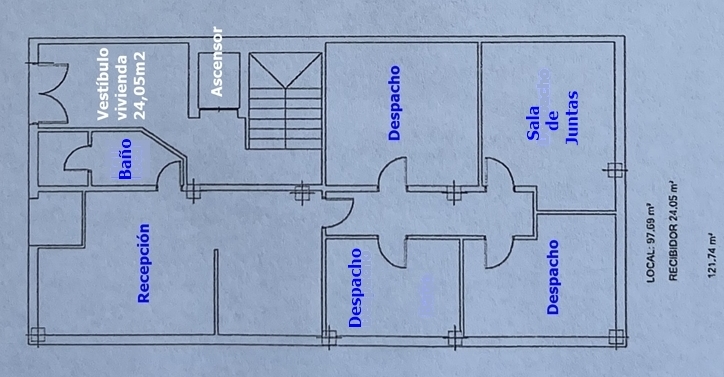 Sus 97m2, actualmente es usado como oficinas, se distribuyen en una amplia zona de recepción, 4 despachos, 1 baño y cuarto de almacenaje.