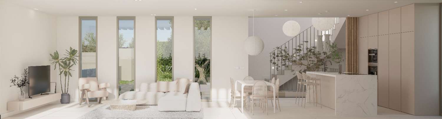 Sus 230m2 aprox., ampliables, se distribuyen en: Hall, salón-comedor con cocina abierta, 4 dormitorios, vestidor, 3 baños, 1 aseo y gran sótano con patio inglés.