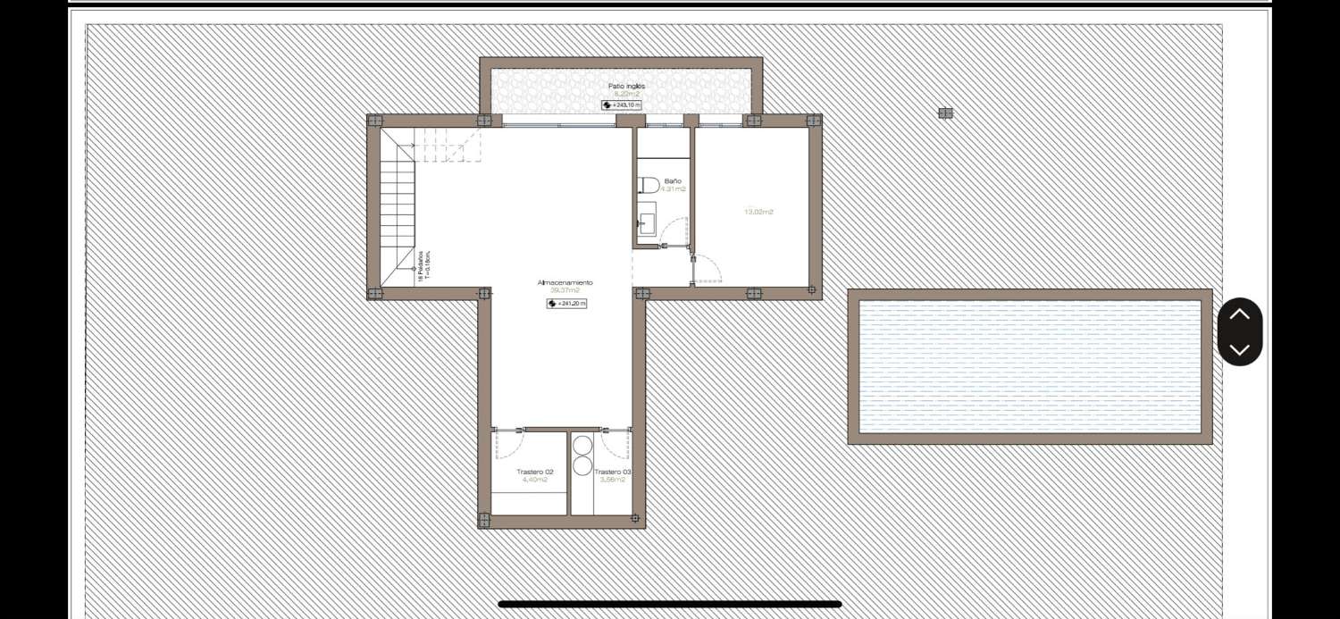 El salón, baño y habitación tienen luz natural que les aporta el patio inglés. El salón de 39m2 es perfecto para sala multiusos, juegos, cine, etc, La habitación de 13m2 podría ser el 4º dormitorio o un despacho ya que tiene luz natural y el baño al lado.